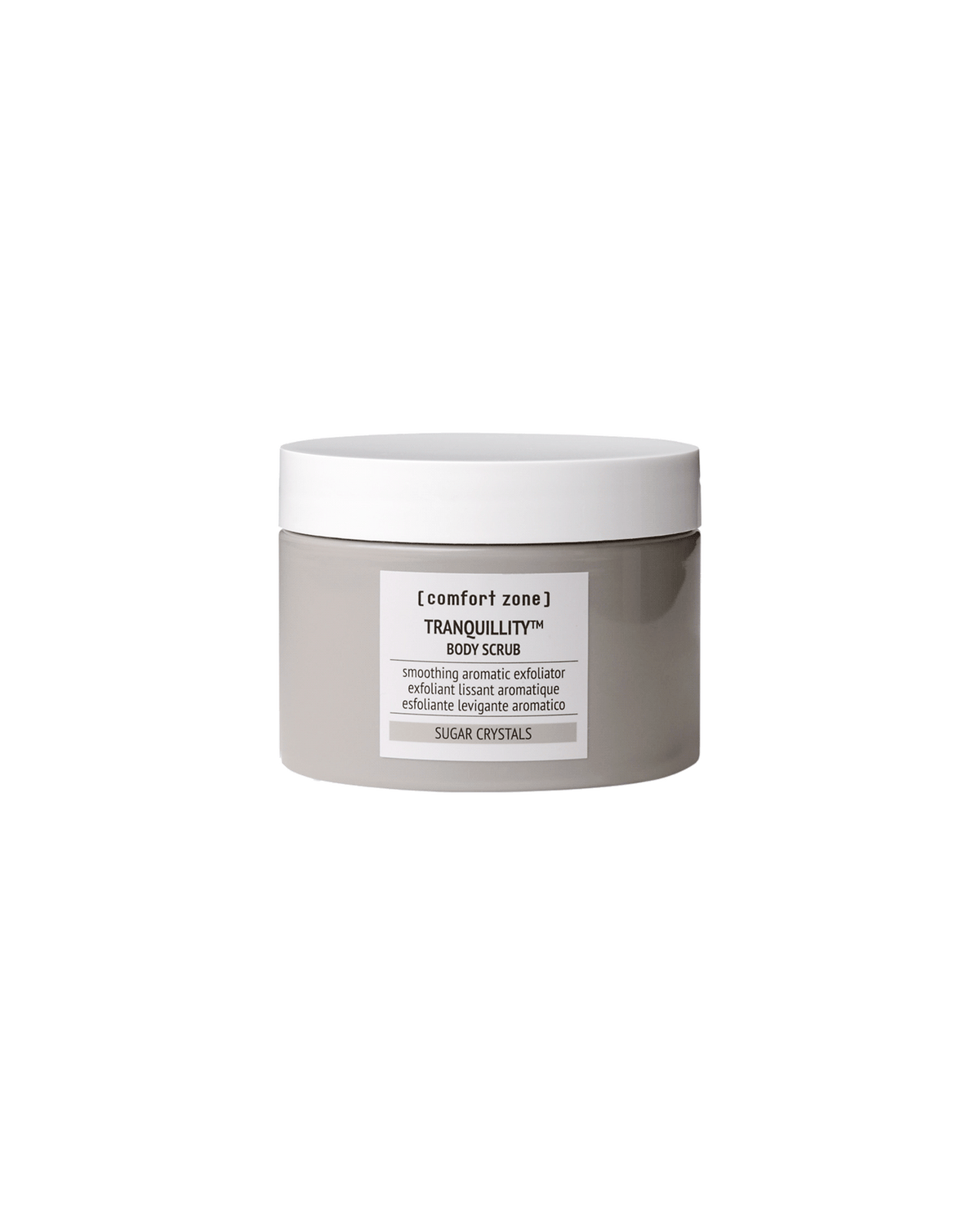Rediscover glowing, soft skin with Tranquillity Body Scrub, the new body exfoliator with sugar crystals. The precious formula, with amaranth and almond oils, melts into the skin while massaging, gently renewing it.