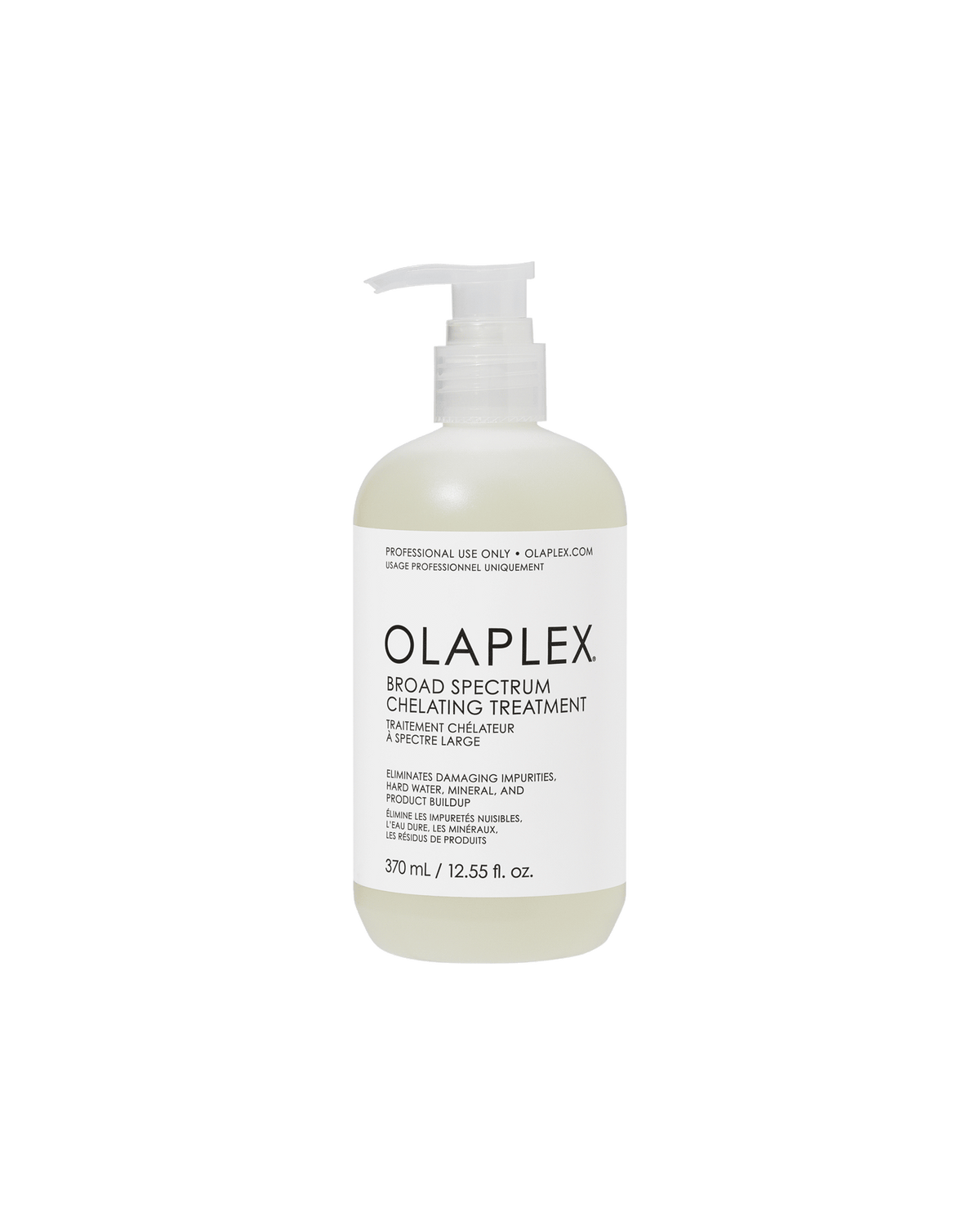 OLAPLEX Broad Spectrum Chelating Treatment purifies hair down to the cortex to remove product buildup, oil, hard water minerals, chlorine, heavy metals, pollutants, medications, and discoloring iron and copper deposits–all without stripping hair of its moisture and essential proteins. The powerful, non-sudsing Broad Spectrum Chelating Blend with Vitamin C-rich Kakadu Plum Extract creates a clean slate to enhance the results of other chemical services that can be compromised by buildup, like keratin treatments, color, and perms. OLAPLEX Bond Building Technology™ maintains strong hair bonds during treatment so hair looks and feels healthier after chelation.