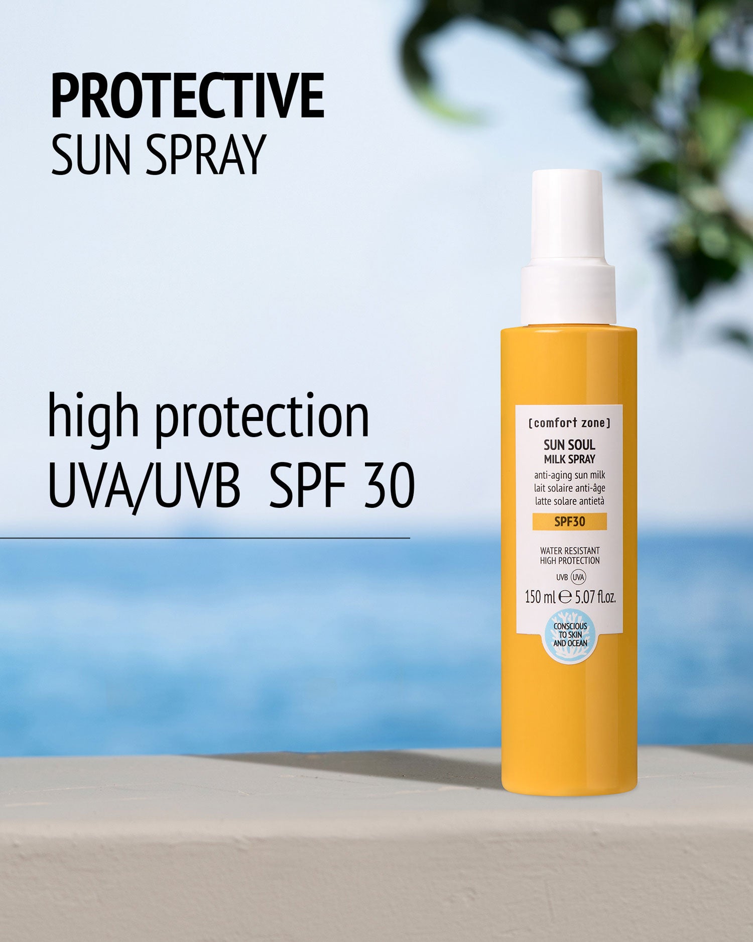 To meet the needs of water sport and nature lovers [comfort zone] has developed this conscious, very water-resistant sunscreen for face & body, that provides long-lasting protection for the skin, while protecting the aquatic environment.