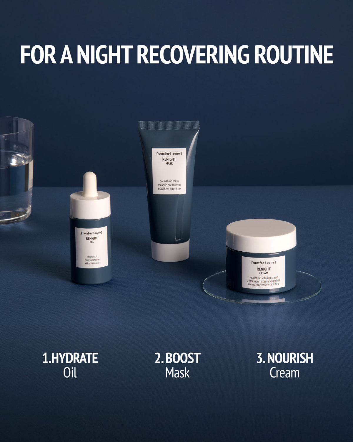 For an additional nourishing and antioxidant effect add a few drops of the Renight Oil to the cream.