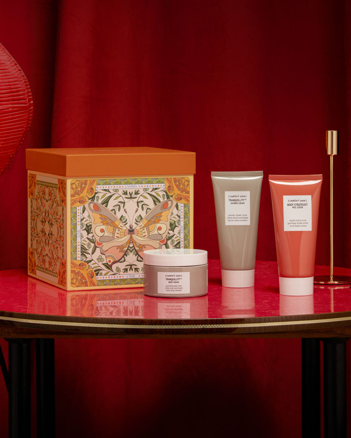 Take care of the body and harmony of senses with the new BODY RITUAL KIT. This kit offers a complete routine to promote an experience of absolute wellness. The design, inspired by the language of tarot cards, depicts a butterfly, an emblem of the soul which, for the ancients, is linked to the breath that connects body and soul.