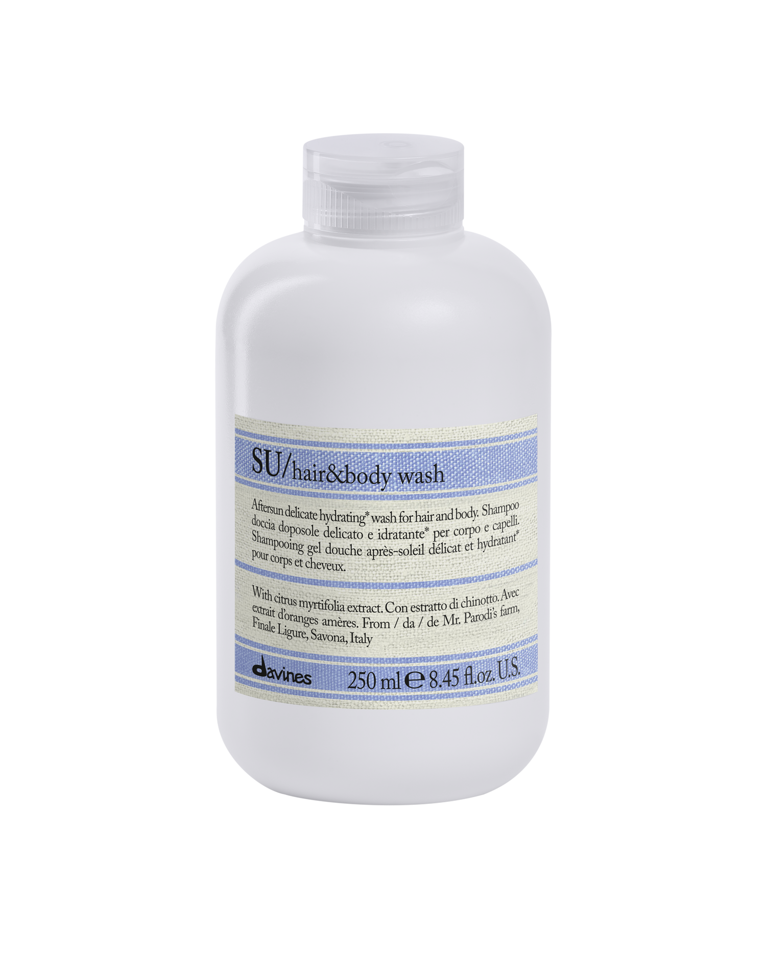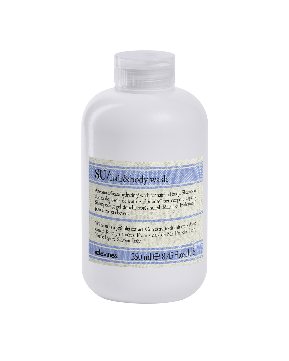 The SU hair and body wash is a multi-benefit shower shampoo. The formula characterized by a full-bodied foam moisturizes and gently cleanses the skin and hair exposed to the sun with an antioxidant and anti-inflammatory action.