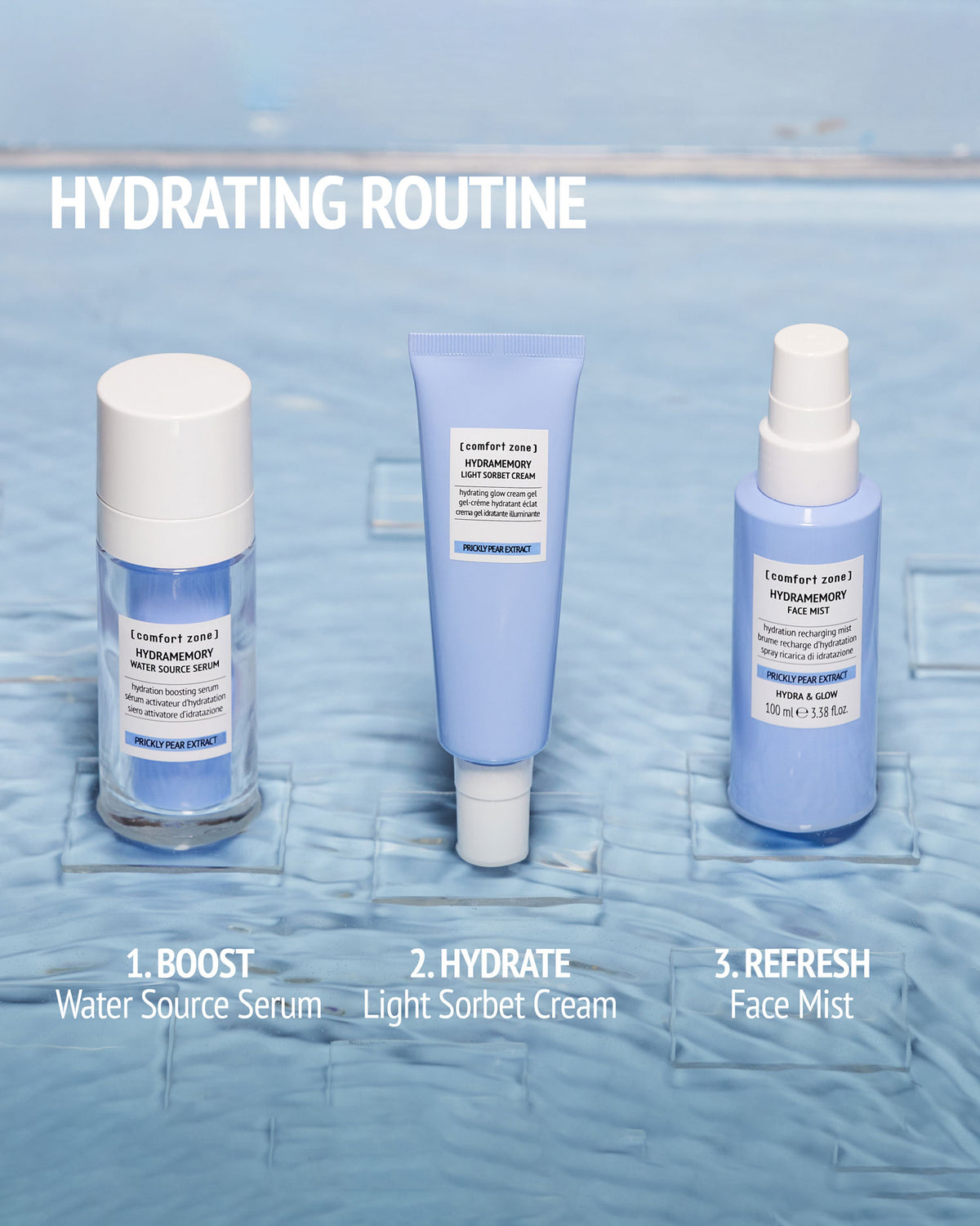 Refresh your skin on the go with the new Hydramemory face mist. This alcohol free ultra fine mist, proven to immediately hydrate the skin, is the perfect pick me up to carry around with you. The vegan formula enriched with prickly pear extract from regenerative organic agriculture and betaine helps the skin to look more radiant and refreshed.