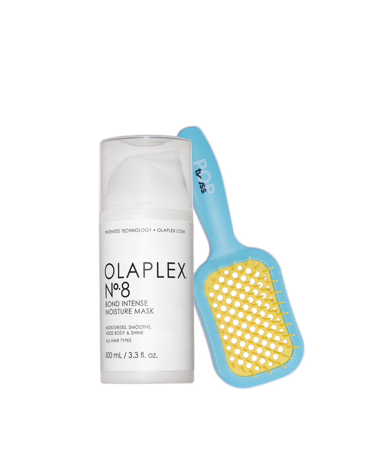 Give your hair the care it deserves with this must-have combo. The Olaplex No.8 Bond Intense Moisture Mask delivers deep hydration, smoothness, and body while strengthening damaged hair from within. Paired with the Pop Brush, it helps detangle with ease, minimizing breakage and leaving your hair soft, manageable, and beautifully healthy.