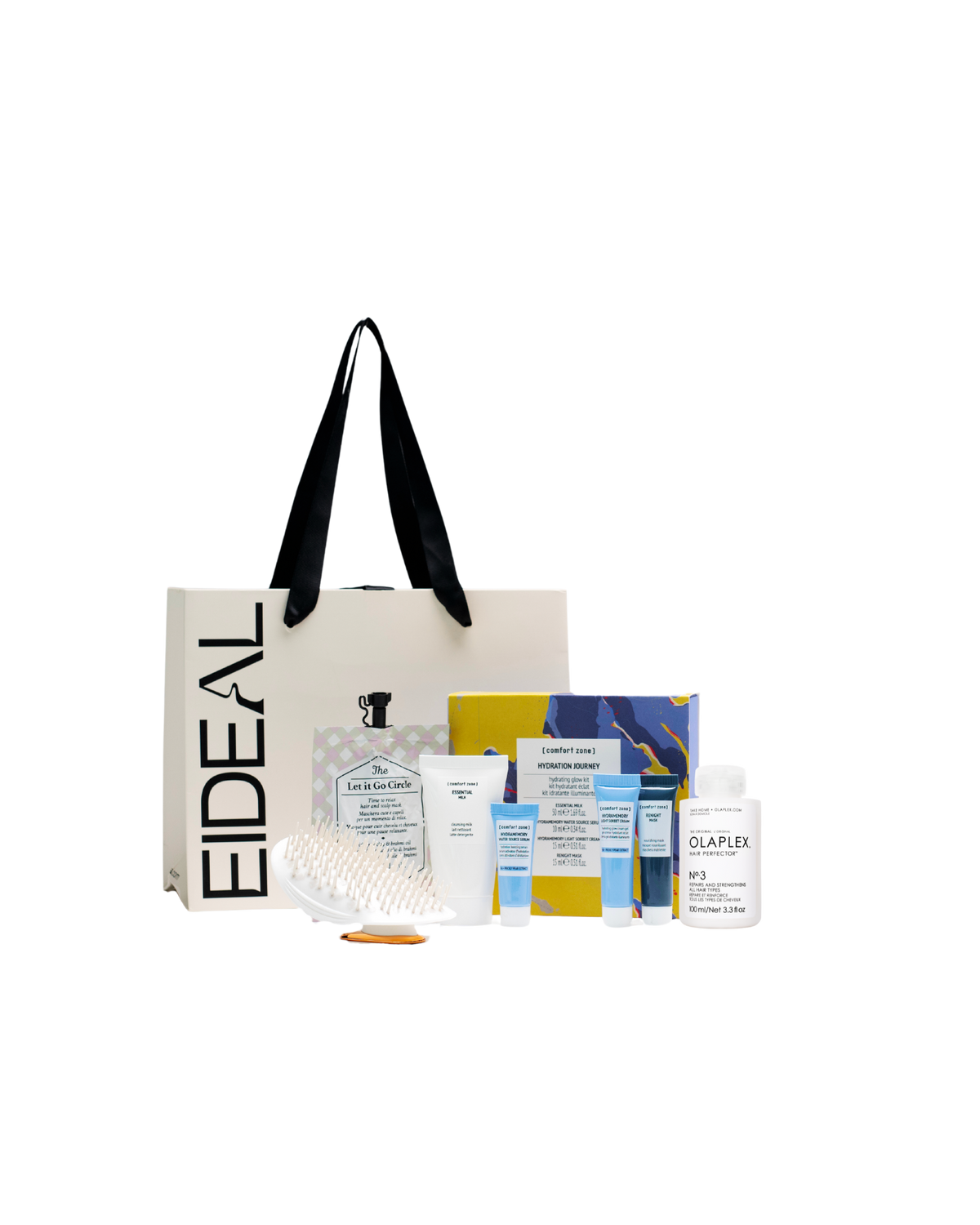 No.9 Bond Protector Nourishing Hair Serum, The Let It Go Circle 50ML, No.3 Hair Perfector 100ML, Manta Brush, and the Hydration Journey Kit.