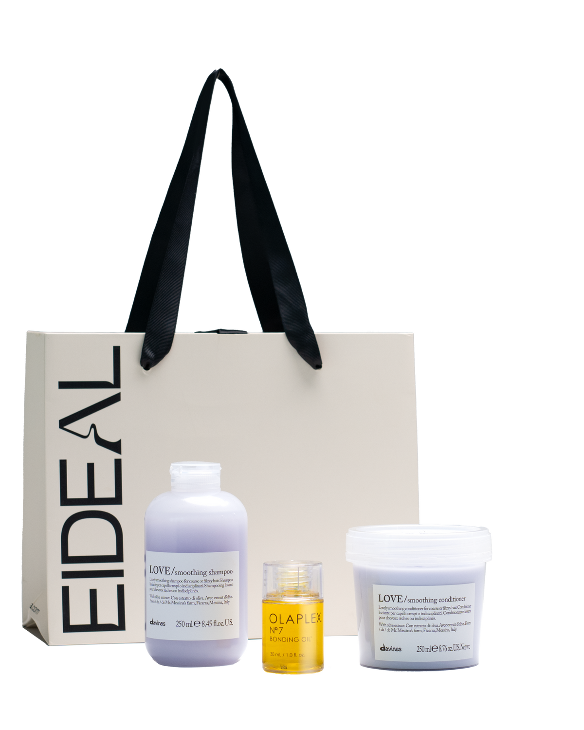 Achieve smooth, nourished, and shiny hair with LOVE Shampoo 250ML, LOVE Conditioner 250ML, and Olaplex No.7 Bonding Oil 30ML.