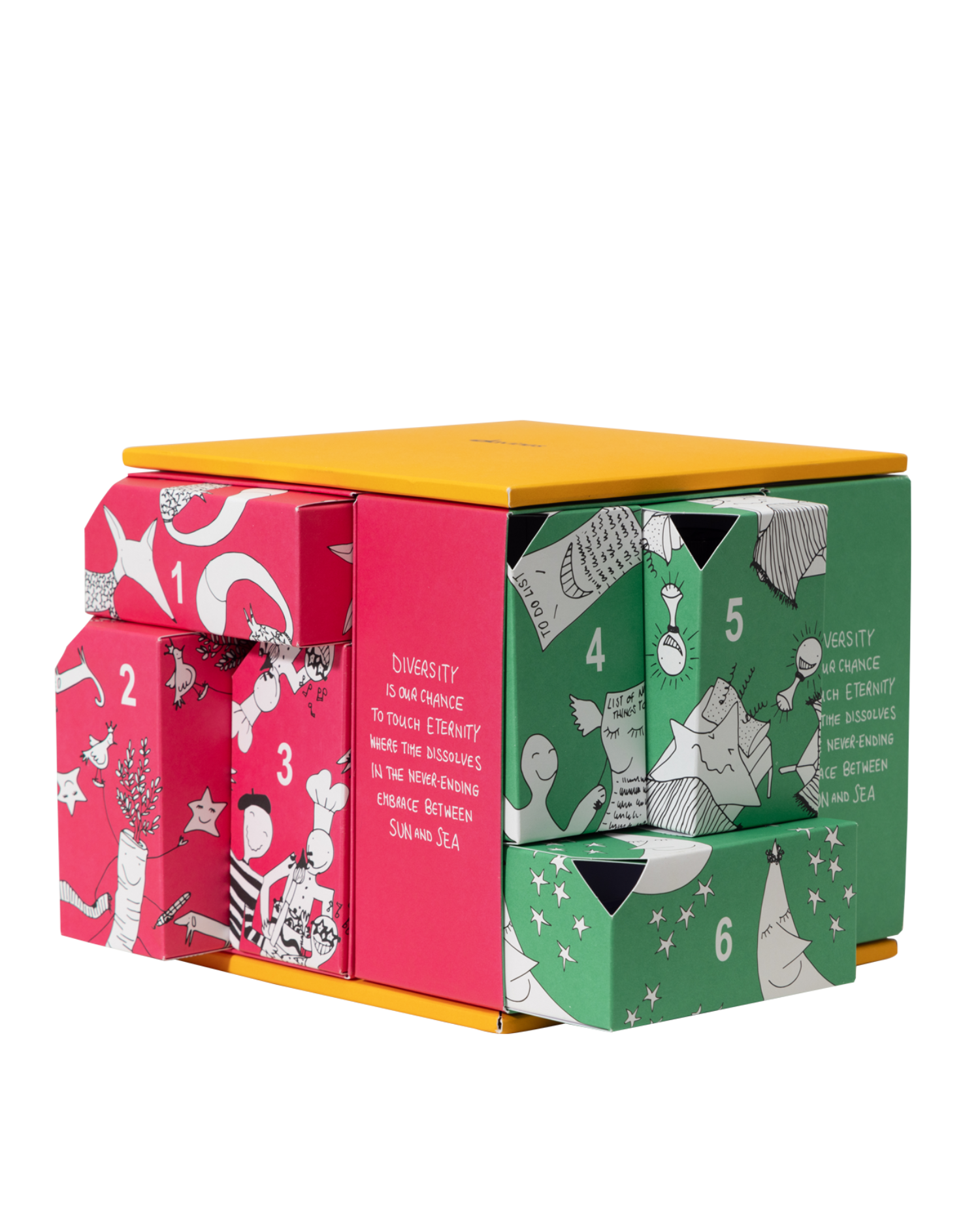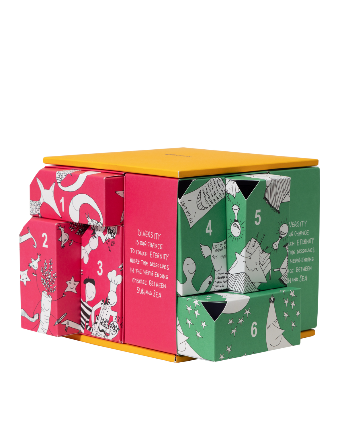 Introducing the precious Davines Advent Calendar, featuring twelve iconic travel-sized products that you can carry with you everywhere! Designed for all hair types, this advent calendar allows you to discover and create your custom routine by combining the products as you please. This limited-edition set includes the exclusive DEDY/Micellar Water, a gentle daily makeup remover suitable for all skin types, making this gift box truly unique. Celebrate a sustainable festive season with eco-friendly packaging made from 100% FSC recycled paper. The box is fully reusable, either as a whole or by repurposing the individual drawer boxes, supporting our shared commitment to a more sustainable world.