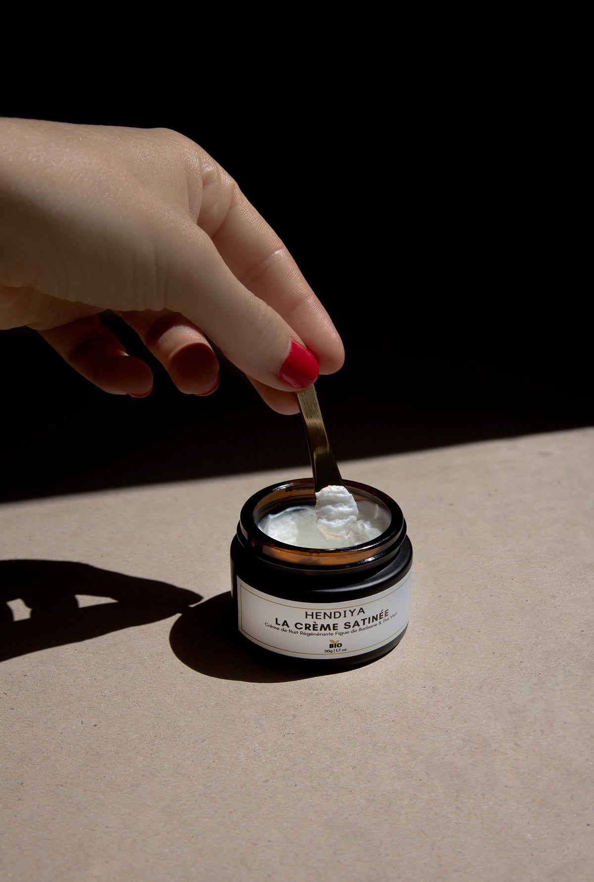 Velvety night cream with plant oils of prickly pear seed, jojoba, and argan, enriched with antioxidant vitamin E.