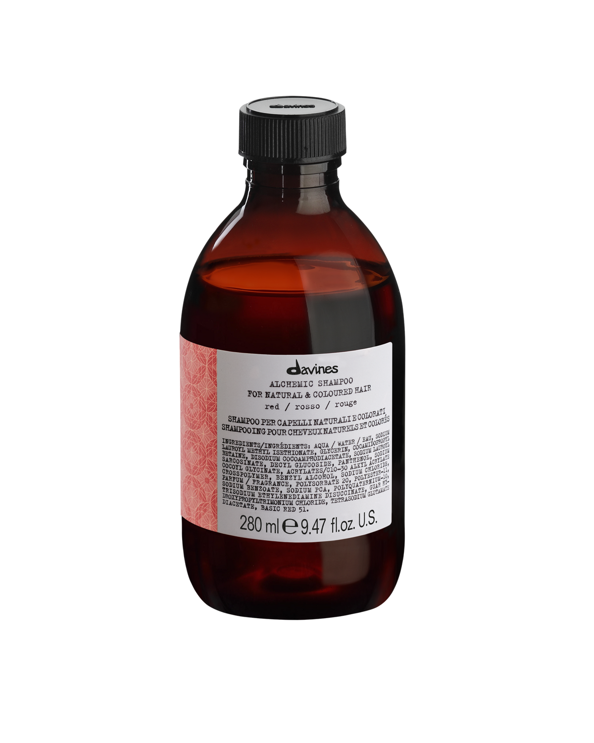 Color-enhancing shampoo for warm red tones. Alchemic Shampoo Red intensifies and illuminates these natural or colored warm red shades.