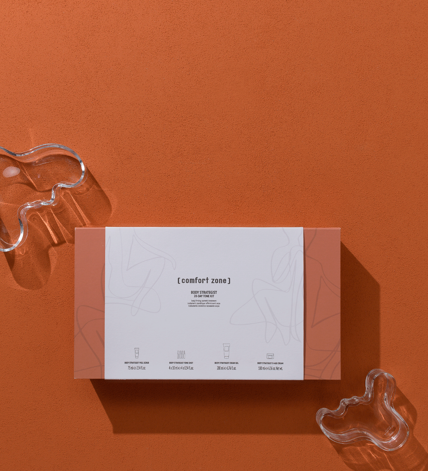 [ comfort zone ] that includes a routine designed and developed by our professionals to improve the appearance of skin that is losing tone and firmness. The luxurious kit includes 4 essential steps for proven and visible results in just one month!