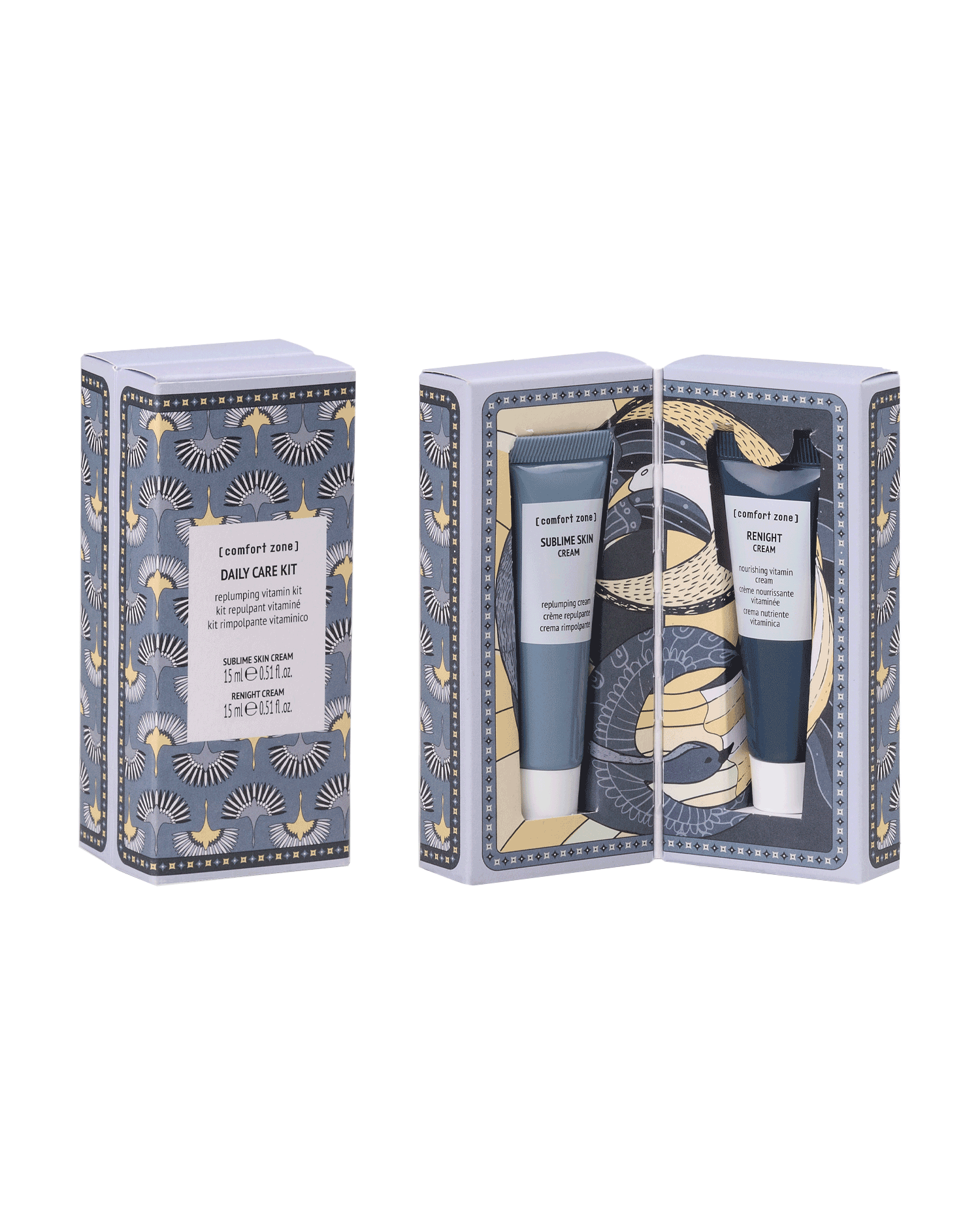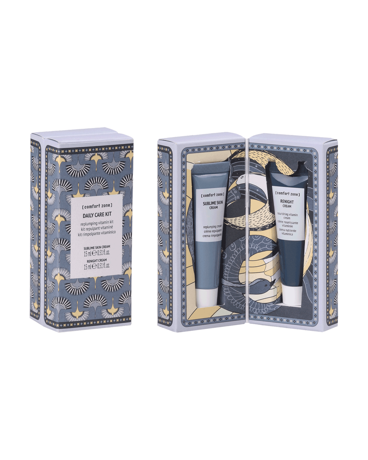 Get ready for a spring weekend with the new DAILY CARE KIT. Enjoy two of [comfort zone]'s most loved products in convenient mini sizes ideal for traveling or discovering a new routine, enclosed by a box enriched with a hand-painted illustration of one of our planet's beautiful landscapes.