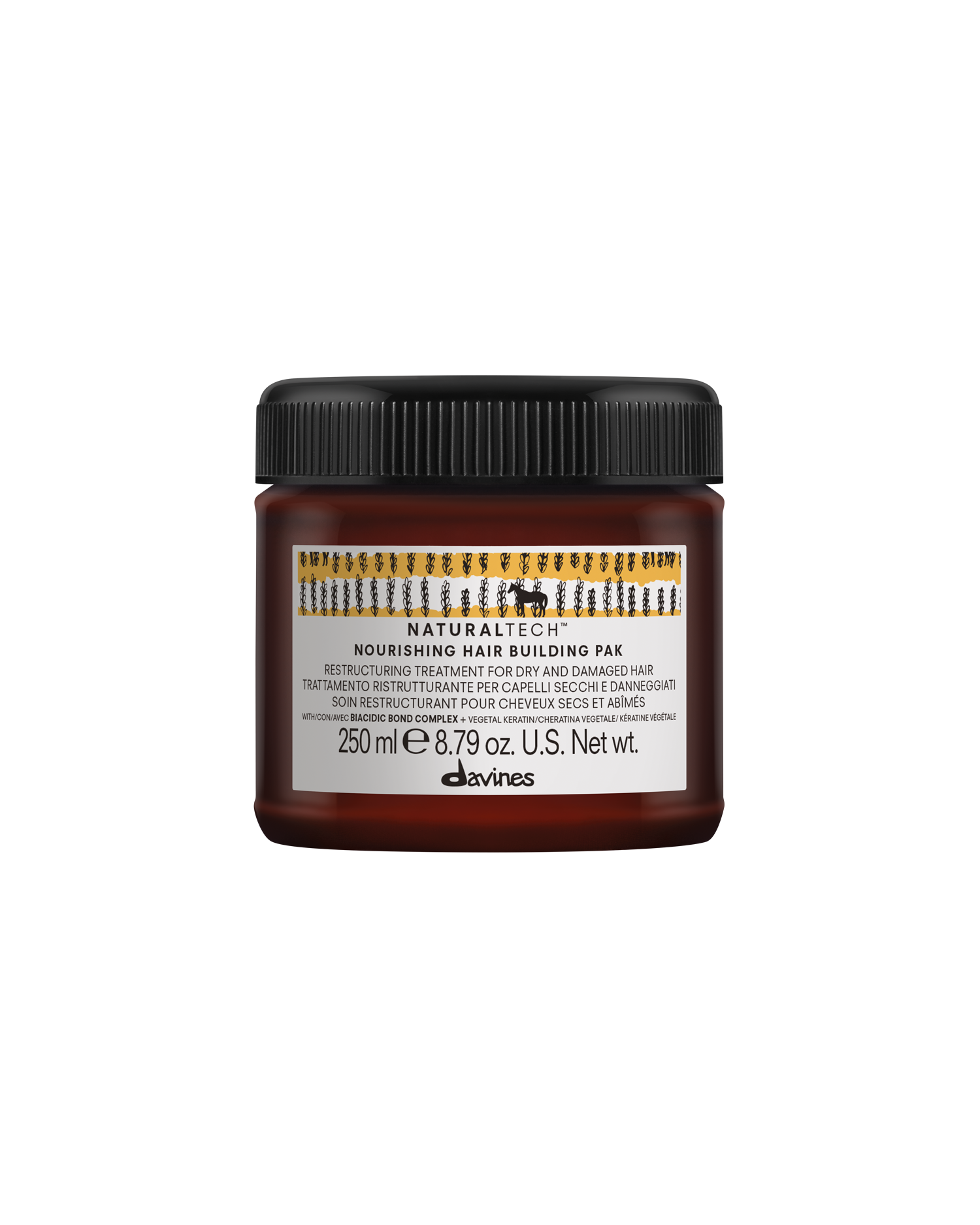 Restructuring mask for damaged hair. Thanks to the vegetal keratin and the Biacidic Bond Complex, it nourishes the roots by strengthening the fibers and protecting it from oxidative damages. The hair is soft and full-bodied.