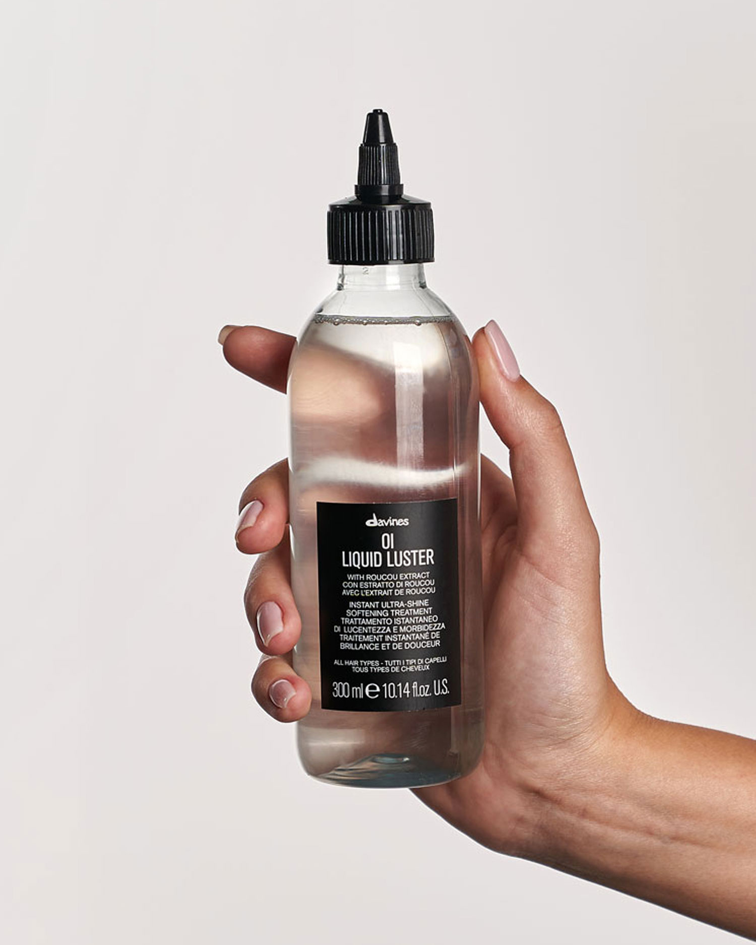 Weightless rinse off treatment for all hair types. Thanks to the innovative clear liquid texture the hydrating agents are directly in contact with the hair fibre, for an instant illuminating effect and a smooth finish. Hair is immediately extra shiny, silky and extremely soft, for a radiant glass like finish.