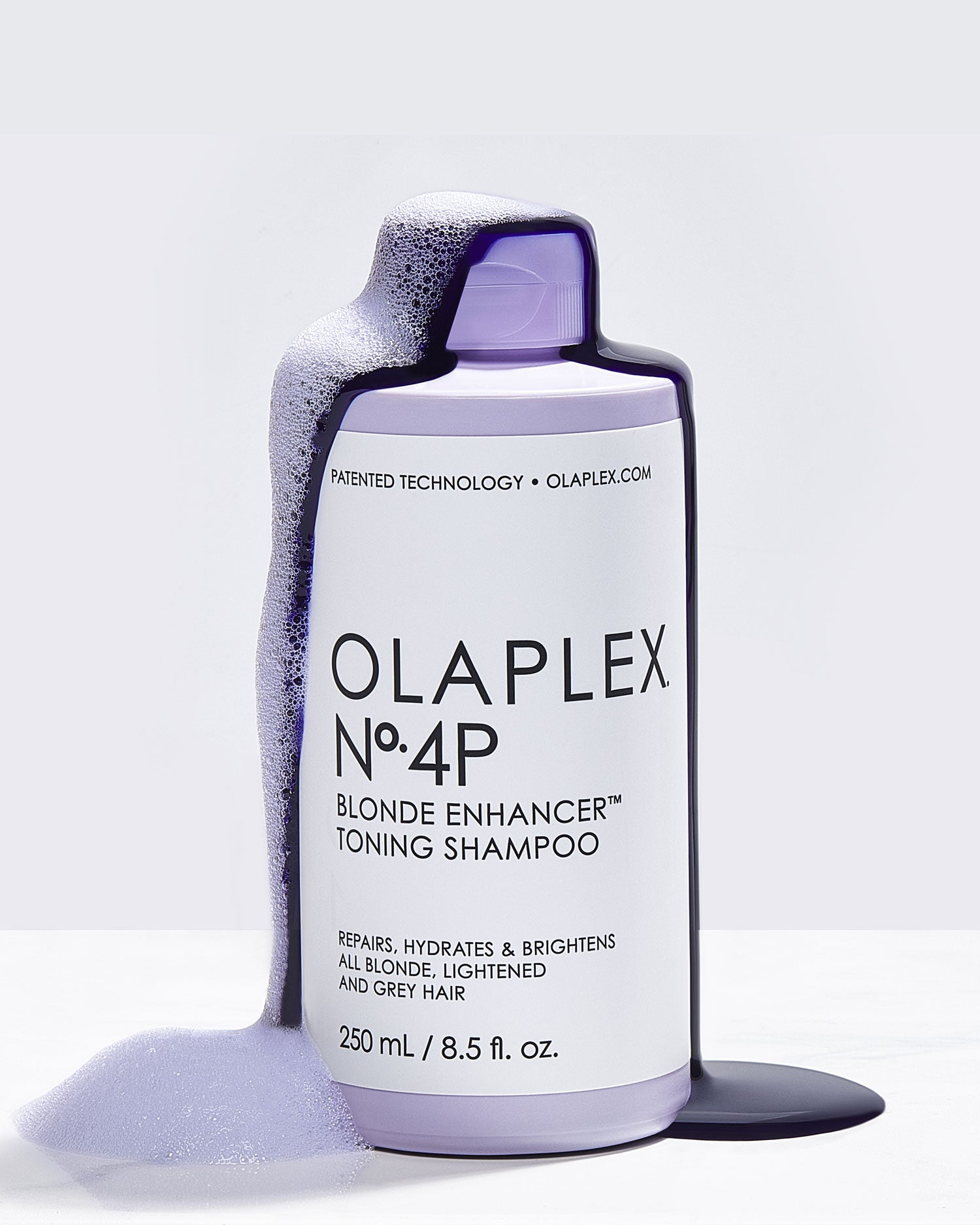 OLAPLEX 4P Blonde Enhancer Toning Shampoo is a highly concentrated purple shampoo that cleanses, tones, and repairs while keeping hair hydrated from roots to ends. Sulfate-free formula creates a rich lather to neutralize brassiness and boost brightness after one use for all blonde, lightened, and grey hair.