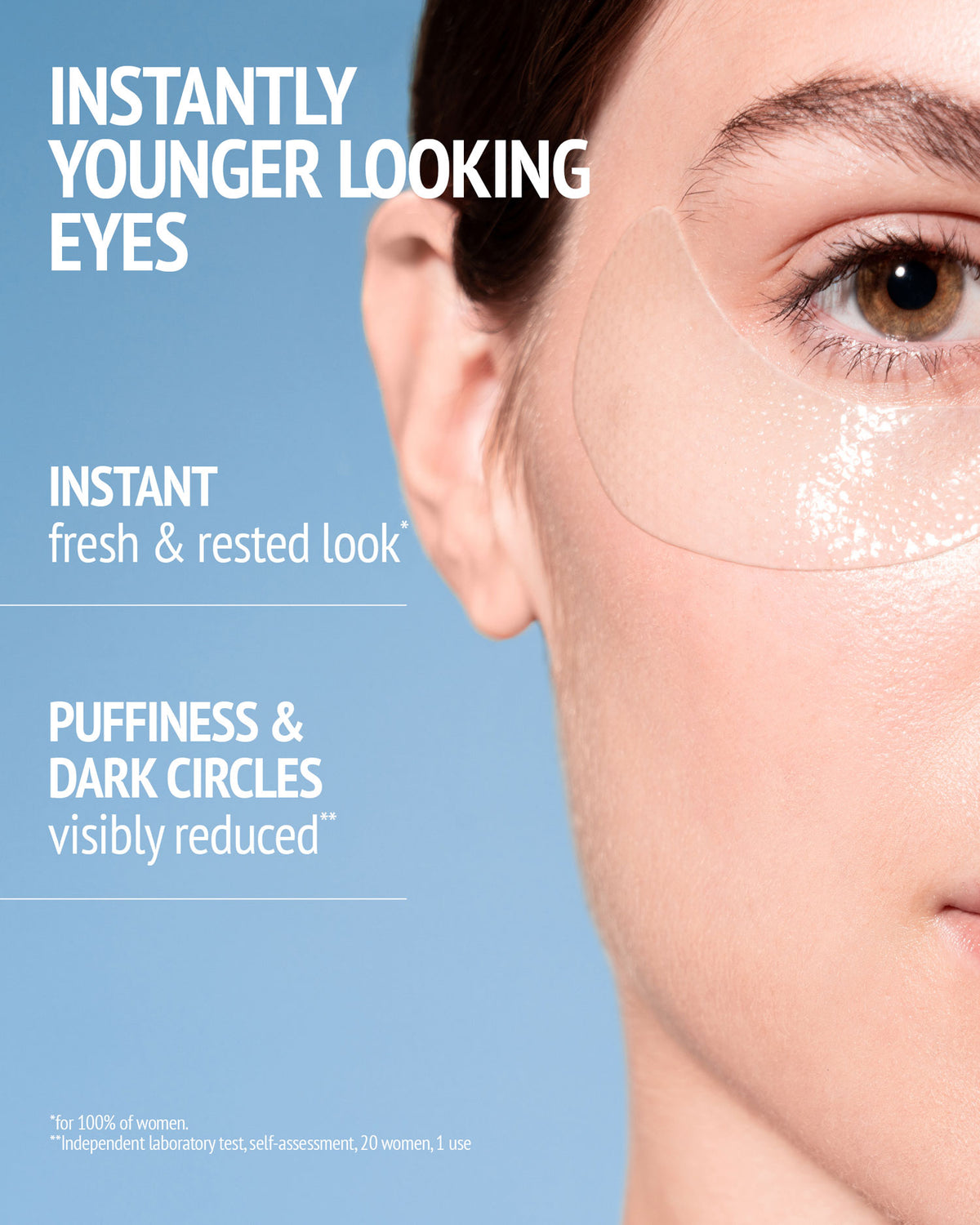 Step 1: Remove the patches and apply to the cleansed area under the eyes, with the bigger part placed on the outside, and the inner part as close to the bridge of the nose as possible, as indicated in the diagram on the packaging.