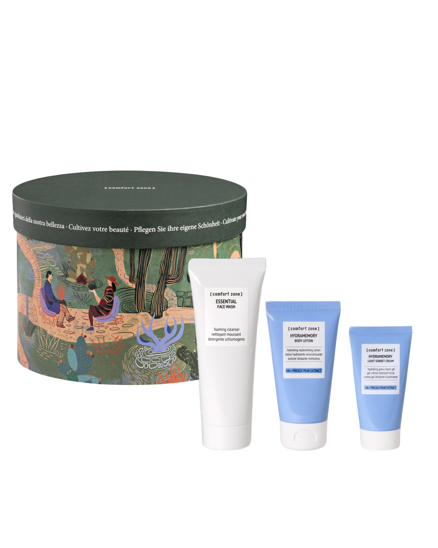 Strengthen your skin barrier and hydrate with this full face and body routine on the go. Discover the limited-edition EXOTIC GARDEN Gift Box—ideal for all skin types in need of hydration. The set contains travel-size best-selling products: Essential Face Wash (75ml), Hydramemory Light Sorbet Cream (30ml), Hydramemory Body Lotion (50ml)